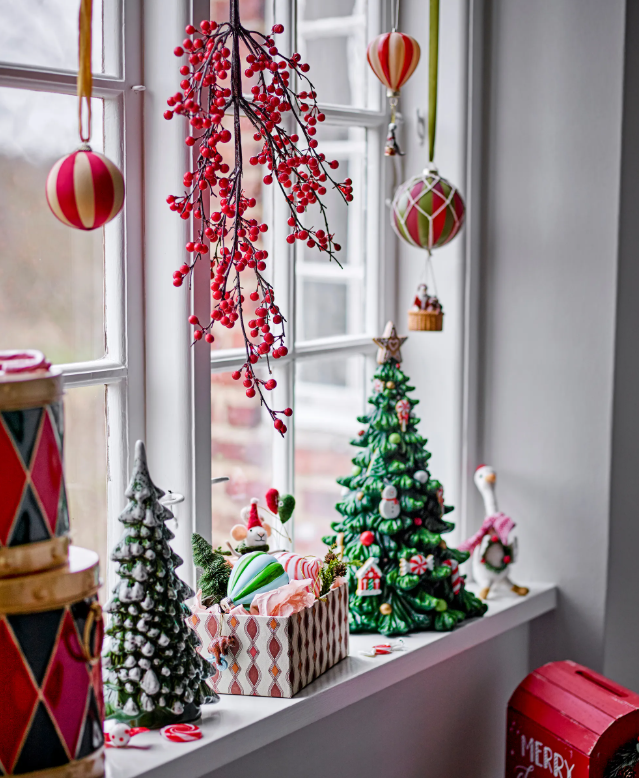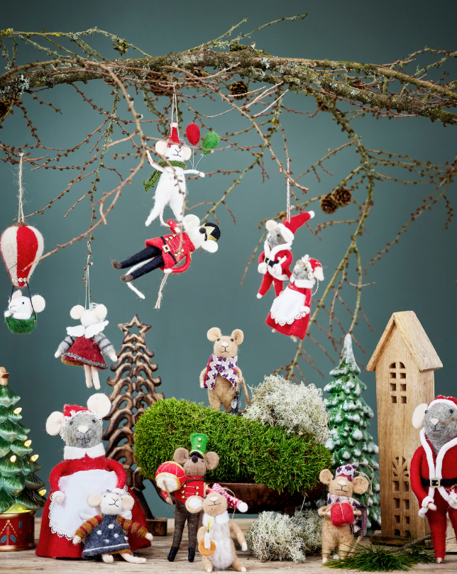 Colgante de navidad ratón con globos, fabricado con material 100% lana, medida:  9cm de largo,  13cm de alto y  5 cm de ancho, acabado hilo teñido con cordón de yute para colgar (aprox. 7-8 cm) , contenido: 1 pieza