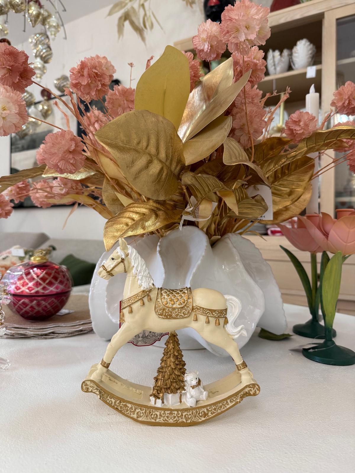 Figura caballo balancín fabricada con poliresina de alta calidad. Medidas: 18 cm de largo, 18 cm de ancho y 4 cm de alto.